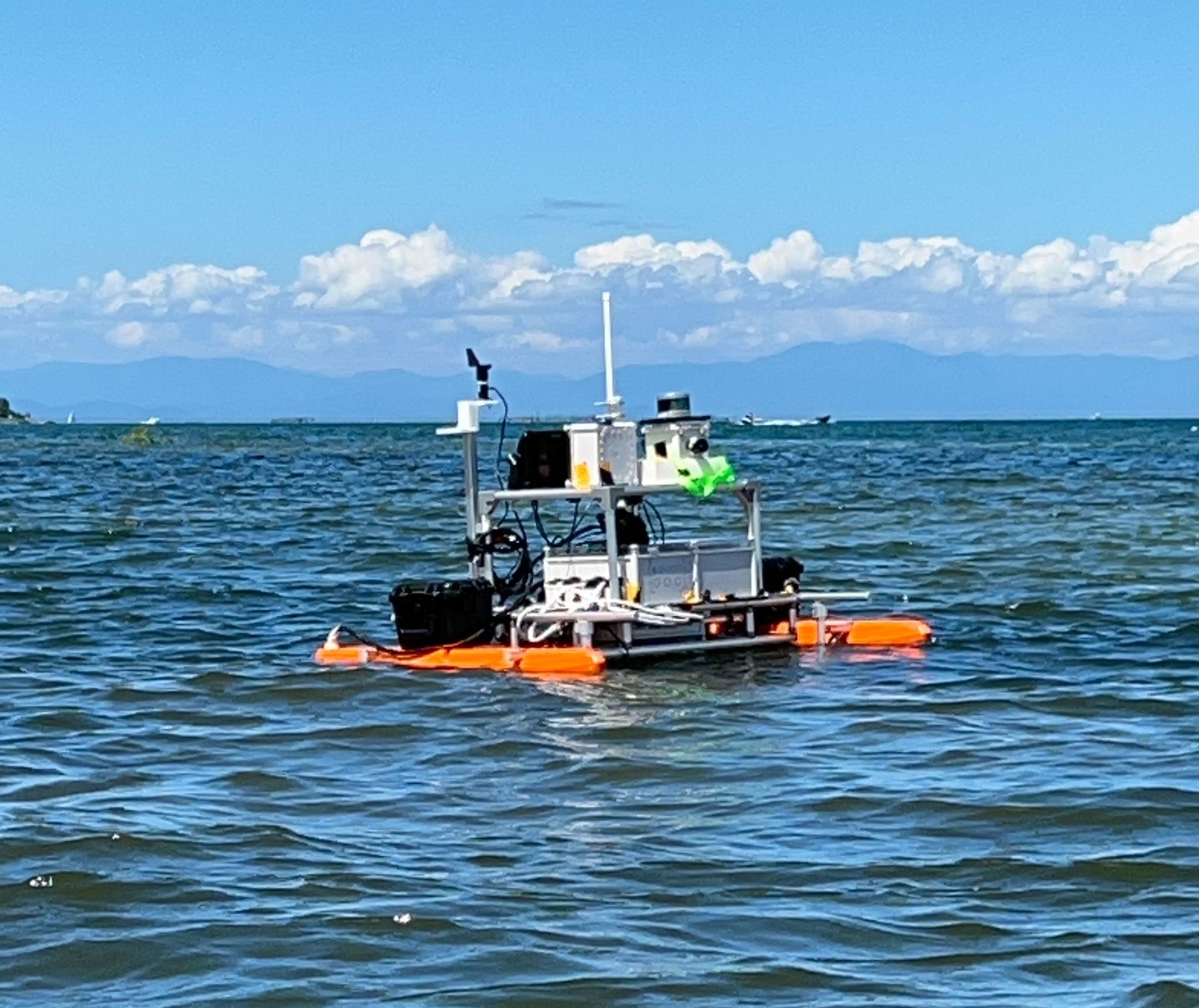 自律航行 近年、水難事故は増加傾向にあり、水難救助の重要性が増しています。しかし、既存の水難救助には限界があり、人力では条件が厳しいといった問題があります。そこで、人力でなく自律小型船を用いた水難探索救助に着目しました。 自律小型船での水難探索では、探索精度、航行制御に関して課題が多くあるため、それらの解決を目標に研究を進めています。